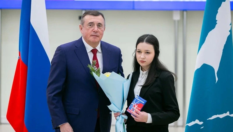 Среди 23 школьников из 15 муниципалитетов почетного вручения паспортов были удостоены и две представительницы Александровск-Сахалинского района: участница хореографического ансамбля «Сахалиночка» центрального районного Дома культуры Дарья Петрушина и участница детско-юношеской театральной студии «Чародеи» ЦРДК Арина Кириченко.
